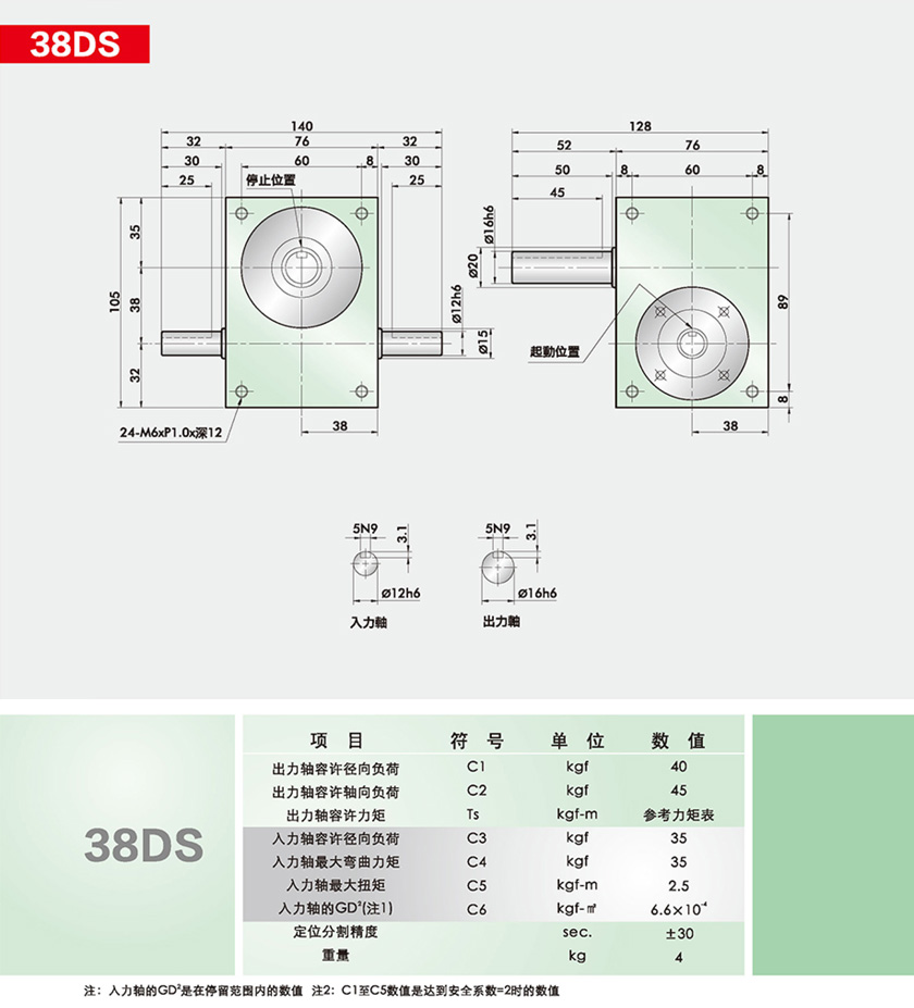 此系列机种为典型传统式心轴造型,其在分割器上加工安装配合齿轮、联轴器或联轴盘,需特别注重孔径公差(+0.015/-0)、及键槽公差(+0.015/-0),其使用场合在输送带驱动、齿轮驱动、无间隙联轴器结合驱动居多。
